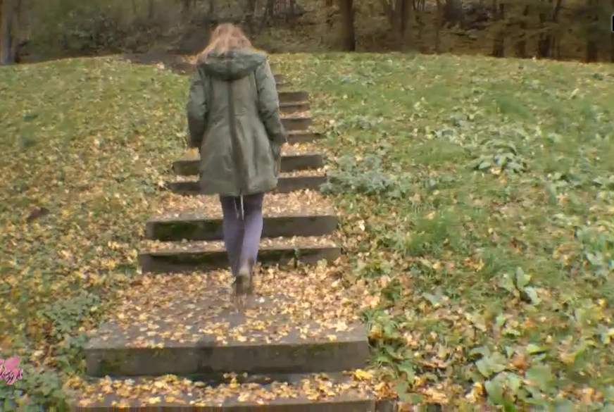Von beiden Seiten kann man mich p****n sehen...oben fahren Autos auf einer Bundesstraße und unten brettern sie über die Autobahn.Auf dem Parkplatz musste ich raus,ich hielt es nicht mehr aus und...