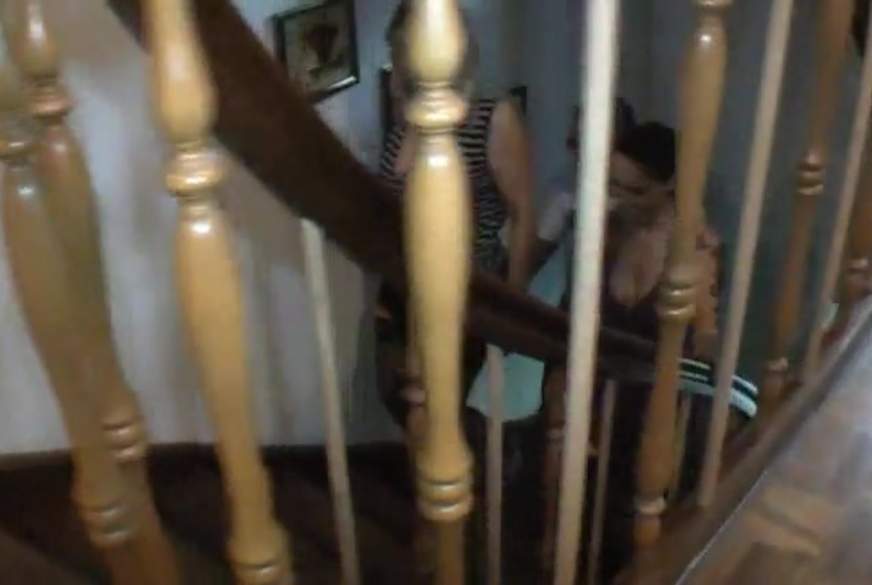 3er F**k im Treppenhaus.