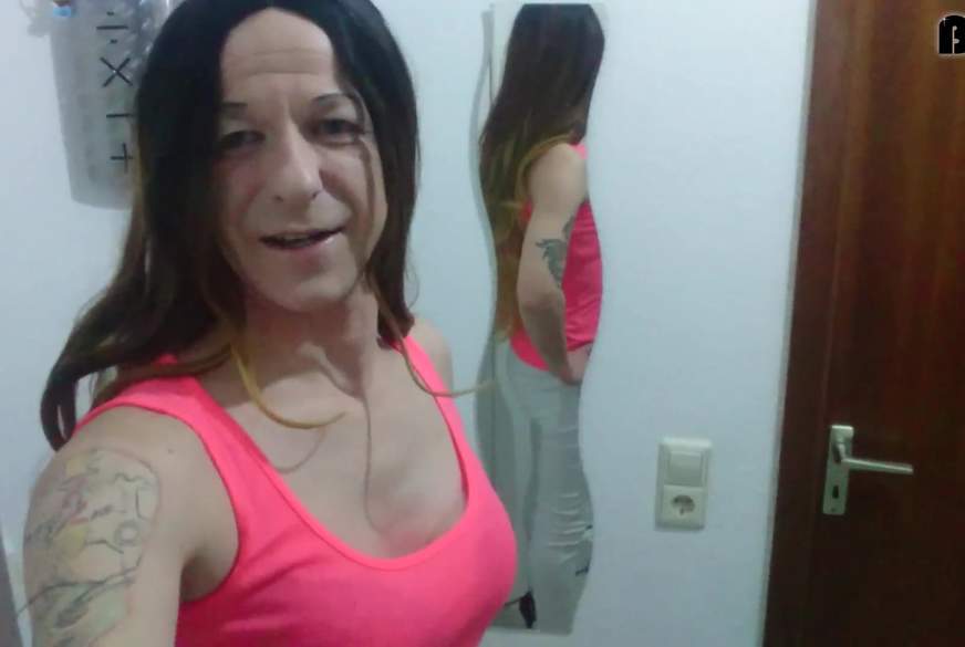hier geiles w*****n mit tv bernadette die gleichzeitig einen reisen doppel dildo in ihrer a********e hat . geeignet fuer leder ,nylon und tv fetischisten