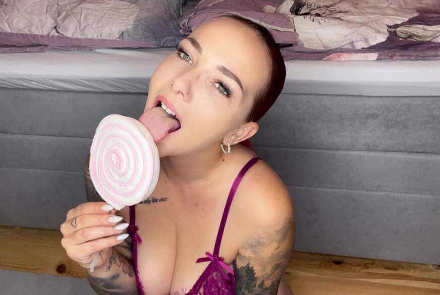 SOFTCORE - Willst du sehen, wie ich es mit einem Lutscher versaue? 🍭😉 Schau mir zu, wie ich mir einen süßen Lutscher gönne und ihn mit einer frechen Überraschung lutsche! #solo #tongue #amateur #camshow #brünette #lollipop